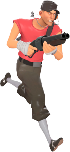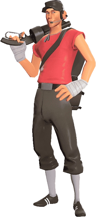 Nascido e criado em Boston , Massachusetts , EUA , o Scout é um lutador veloz com um taco de baseball e uma atitude sarcástica "na sua cara". Ele é o mercenário mais rápido e móvel no campo de batalha. O salto duplo do Scout o ajuda a manobrar oponentes mais lentos como o Heavy e navegar pelo terreno enquanto desvia de balas e projéteis que se aproximam. Carregando uma Espingarda , Pistola e Bastão, ele é uma classe ideal para combates agressivos e flanqueamento. O Scout se destaca em táticas de "bater e correr" que esgotam a saúde do inimigo, pois sua alta mobilidade permite que ele entre, cause dano e escape antes de ser notado. No entanto, Scout possui a menor saúde padrão (ao lado do Engineer , Sniper e Spy ), deixando-o vulnerável na linha de frente. No entanto, esta é uma troca justa, dada a sua capacidade de entrar e sair de pontos quentes disputados rapidamente, permitindo-lhe mudar o rumo da batalha antes mesmo que o time inimigo perceba.
