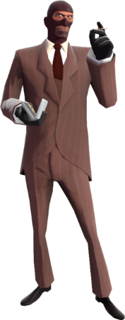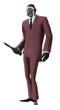 Vindo de uma região indeterminada da França , o Spy é um entusiasta de ternos afiados e facas ainda mais afiadas. Usando uma variedade única de relógios de camuflagem , ele pode se tornar invisível ou até fingir sua própria morte , permitindo que ele se infiltre nas linhas inimigas com poucas chances de detecção. Seu Disguise Kit permite que ele represente qualquer classe em qualquer equipe. Com bastante habilidade na arte de enganar, o Spy pode momentaneamente enganar os inimigos com seu disfarce, levando-os a uma falsa sensação de segurança. Quando chegar a hora certa, ele pode emergir da madeira para desferir um golpe mortal, apunhalando seu desavisado "companheiro de equipe" pelas costas. Na verdade, uma rápida facada nas costascom qualquer uma das facas do Spy matará a maioria dos inimigos em um único golpe - desde que não estejam sob os efeitos de qualquer tipo de invulnerabilidade ou alguma outra forma de imensa redução de dano.